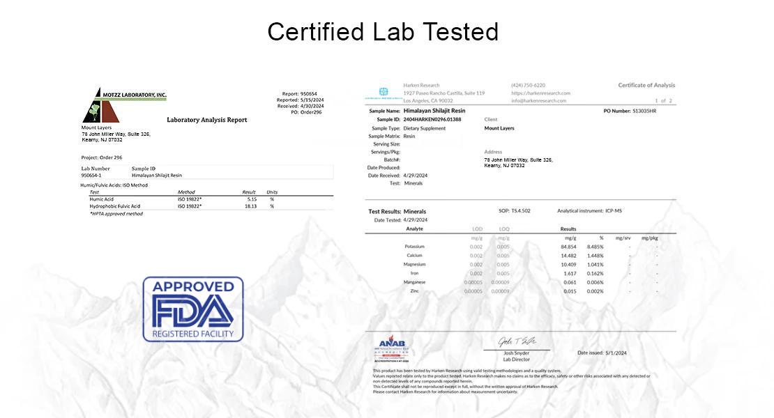 Mount Layers Shilajit is tested in independent labs to make sure contaminants like PCB’s, furans, heavy metals and dioxins are below the limits defined by European Union and California Proposition 65.